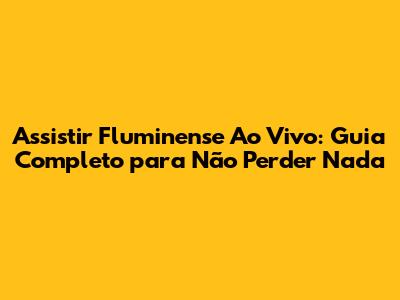 Assistir Fluminense Ao Vivo: Guia Completo Para Não Perder Nada