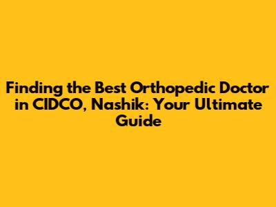 Finding Orthopedic Doctors in CIDCO, Nashik: Resources