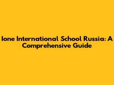 Ione International School Russia: Everything You Need To Know