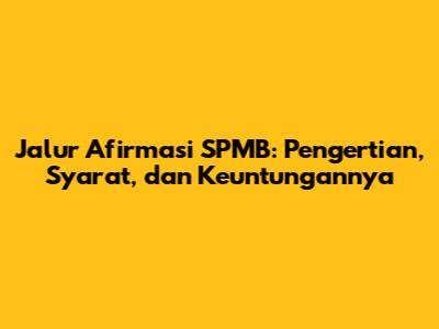 Jalur afirmasi dalam Seleksi Penerimaan Mahasiswa Baru (SPMB) merupakan sebuah program yang dirancang khusus untuk memberikan kesempatan lebih besar kepada calon mahasiswa dari kelompok masyarakat tertentu yang kurang mampu atau berasal dari daerah tertinggal. Tujuan utama dari jalur ini adalah untuk menciptakan akses pendidikan yang lebih adil dan merata bagi seluruh lapisan masyarakat Indonesia. Dengan adanya jalur afirmasi, diharapkan para siswa berpotensi dari berbagai latar belakang sosio-ekonomi dapat meraih impian mereka untuk melanjutkan pendidikan tinggi.