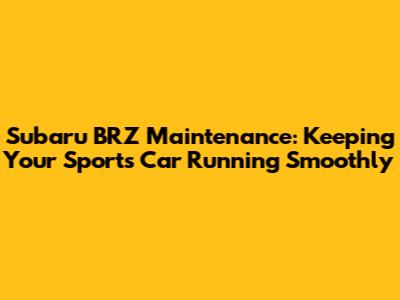 Subaru BRZ Maintenance: Keeping Your Sports Car Running Smoothly