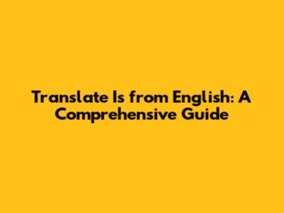 Translate Is From English: A Comprehensive Guide