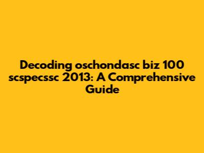 Understanding Oschondasc Biz 100 Scspecssc 2013